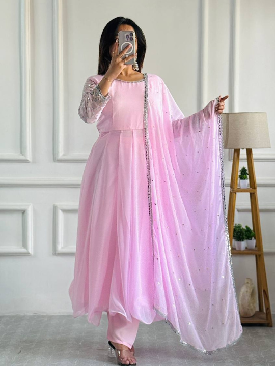 Step into any celebration with confidence and poise wearing our NEW Designer Party Wear Gown with Pant, a striking ensemble that redefines contemporary elegance. Crafted for modern women who crave both style and comfort, this outfit features a unique fusion of ethnic embroidery and modern silhouettes. The richly detailed embroidery work adds a luxurious touch, while the tailored pant ensures ease of movement, perfect for weddings, festive gatherings, and special evening events.